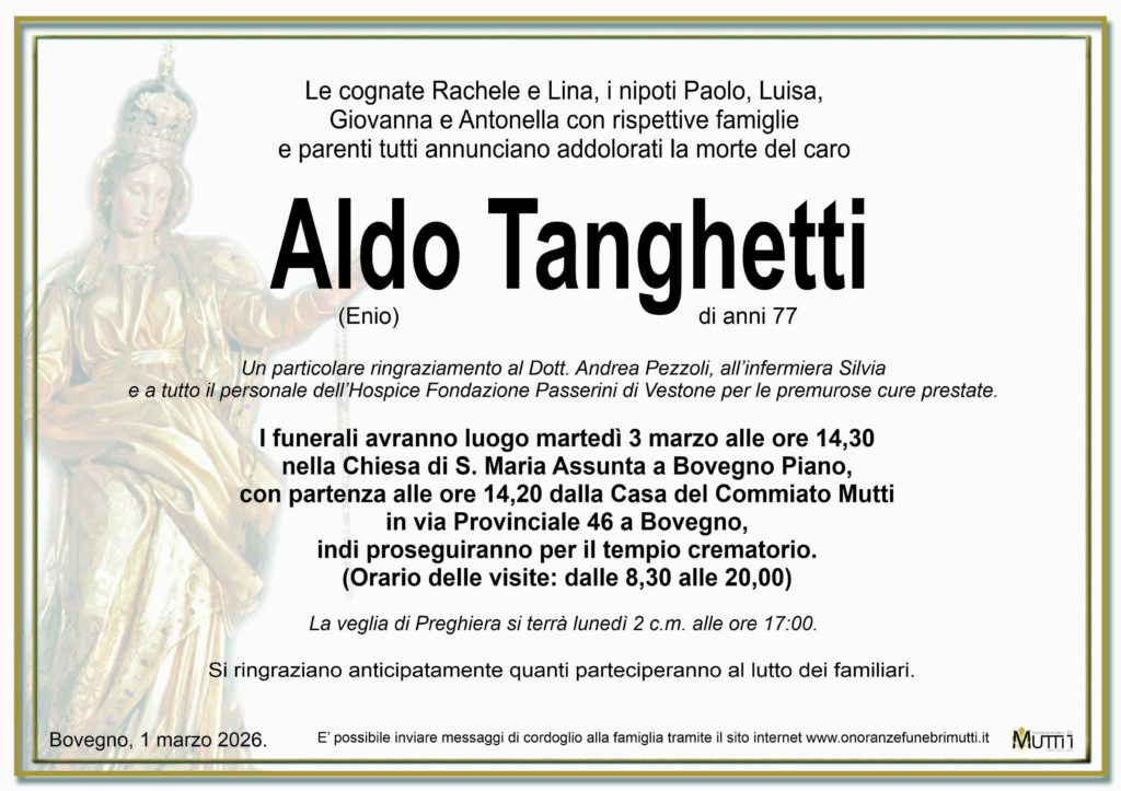 sentite condoglianze..fam.Tanghetti Edoardo