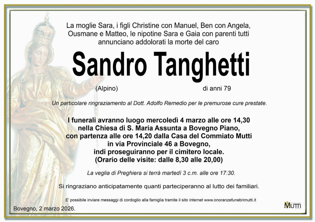 Sono profondamente addolorato per questa notizia e il mio dolore è immenso, avendola appresa oggi per telefono. Sandro, mi mancherai; eri l’ultimo cugino rimasto nella mia famiglia.