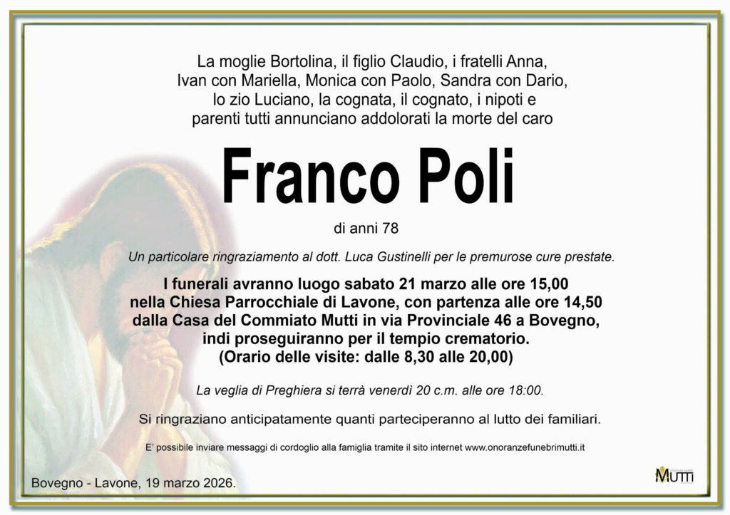 Condoglianze a Lina al figlio e parenti tutti da Severina e Franco Poli ciao Franco fai buon viaggio